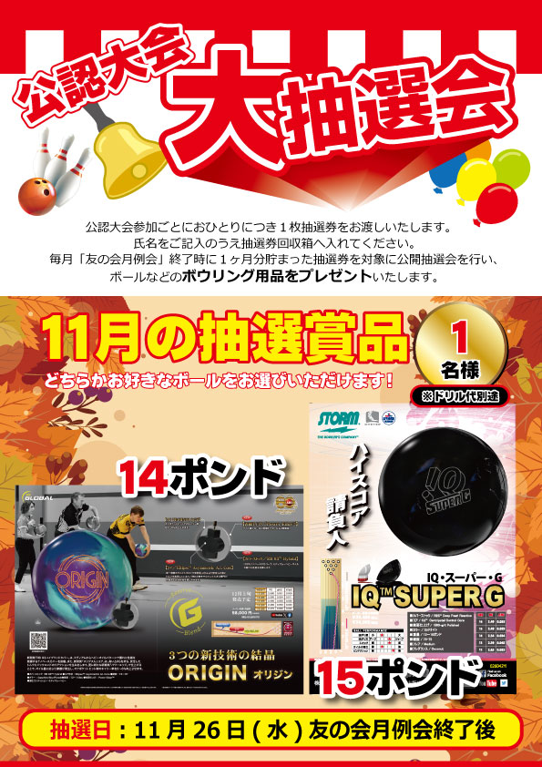 大会・リーグ・教室・10レーン以上使用予定の団体ご予約スケジュール [ 11/1 現在 ]