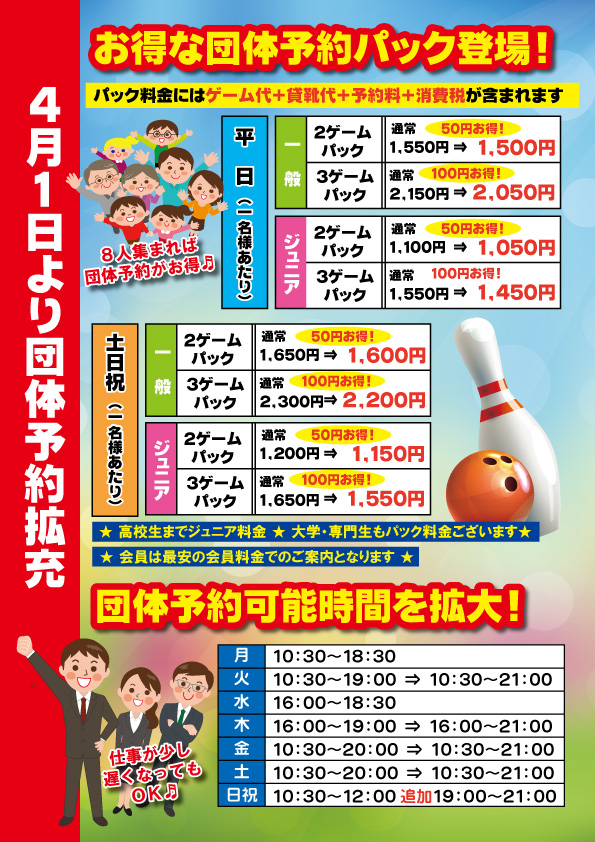大会・リーグ・教室・10レーン以上使用予定の団体ご予約スケジュール [ 2/28 現在 ]